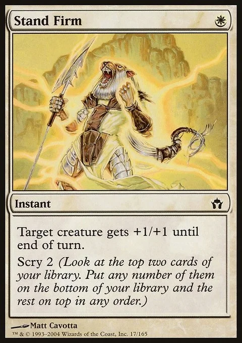 Target creature gets +1/+1 until end of turn. Scry 2. (Look at the top two cards of your library, then put any number of them on the bottom and the rest on top in any order.)