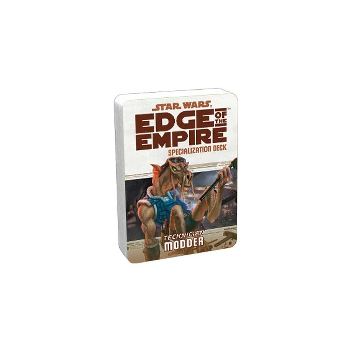 Star Wars™: Edge of the Empire™ Specialization Decks, provide GMs and players with a fun and easy way to manage character and NPC talents at the gaming table. New and experienced players alike will appreciate these handy reference cards, and GMs will love being able to keep the action moving. You’ll have the text of your talents at your fingertips, leaving you free to focus on the challenges at hand, while art for each talent immerses you even further into the Star Wars universe. Modders make the most of the technology of the galaxy. Whether they are upgrading ships, speeders, or blasters, Modders have the tools and knowledge necessary to achieve peak performance. Each Specialization Deck contains: 2 cover cards (including a reference guide for each deck) 20 standard sized talent cards These are not a standalone product. A copy of the Star Wars: Edge of the Empire Core Rulebook is required to play.