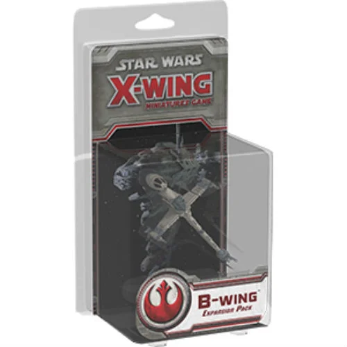 Bring the B-wing to your games of X-Wing with the B-Wing Expansion Pack. The B-wing’s heavy weapons array and resilient shielding quickly solidified it as the Alliance’s most formidable assault fighter. Accordingly, the B-Wing Expansion Pack packs a mighty punch! The B-wing can wield as many as two torpedoes, as well as a cannon, and it can be equipped with a system upgrade for precision targeting. The B-Wing Expansion Pack contains a stunning miniature at 1/270 scale, a maneuver dial, all necesssary tokens, four ship cards, and a devastating arsenal of five upgrade cards.