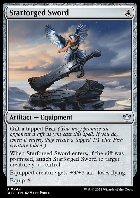 When Starforged Sword enters, if the gift was promised, attach Starforged Sword to target creature you control.