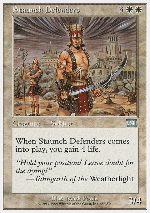 When Staunch Defenders comes into play, you gain 4 life.