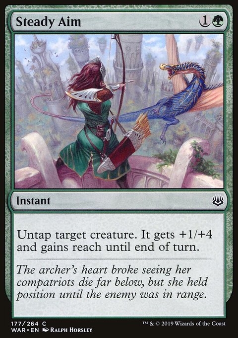 Untap target creature. It gets +1/+4 and gains reach until end of turn.