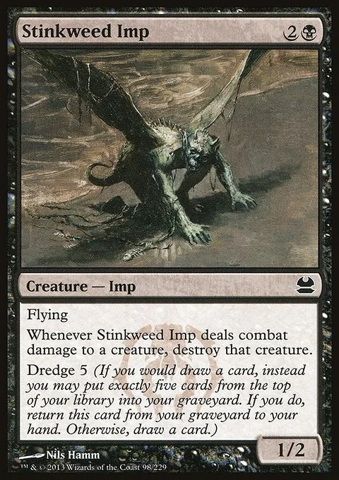 Whenever Stinkweed Imp deals combat damage to a creature, destroy that creature.
