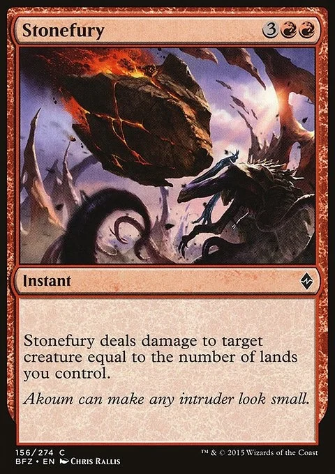 Stonefury deals damage to target creature equal to the number of lands you control.