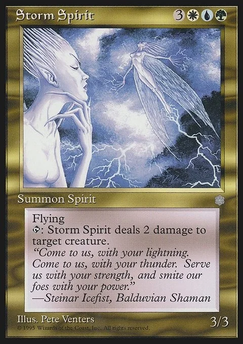 Flying T: Storm Spirit deals 2 damage to target creature.