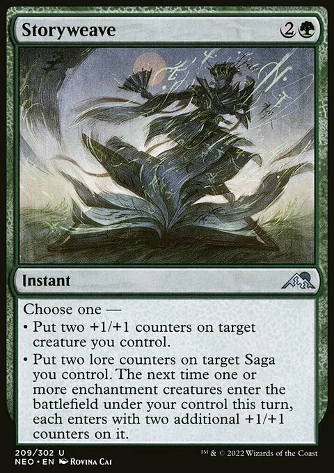 Choose one — • Put two +1/+1 counters on target creature you control. • Put two lore counters on target Saga you control. The next time one or more enchantment creatures enter the battlefield under your control this turn, each enters with two additional +1/+1 counters on it.