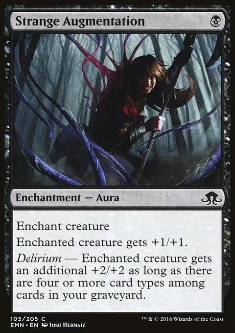 Enchant creature Enchanted creature gets +1/+1. Delirium — Enchanted creature gets an additional +2/+2 as long as there are four or more card types among cards in your graveyard.