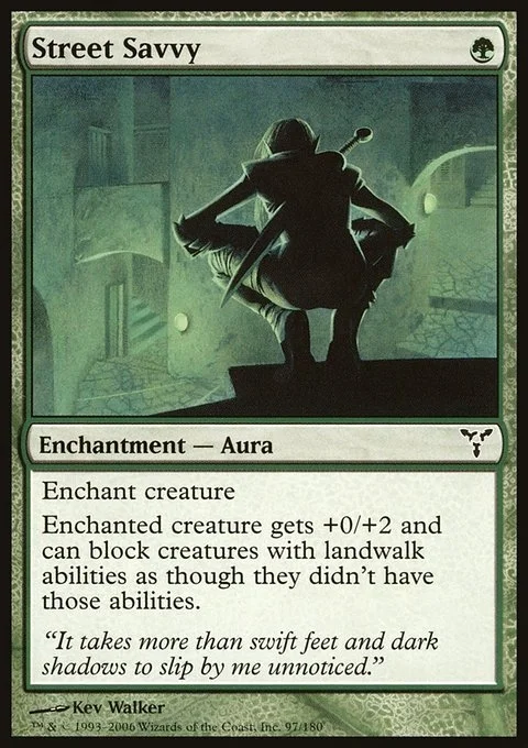 Enchant creature Enchanted creature gets +0/+2 and can block creatures with landwalk abilities as though they didn't have those abilities.