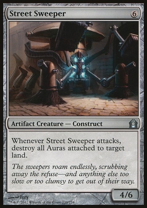 Whenever Street Sweeper attacks, destroy all Auras attached to target land.
