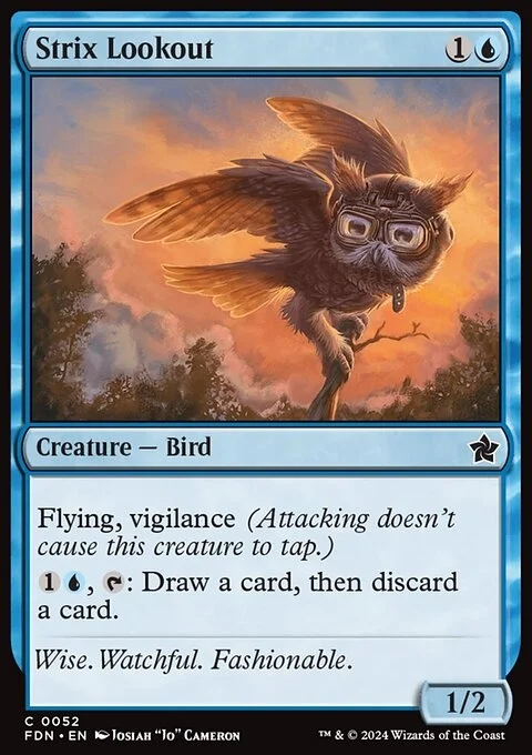 Flying, vigilance (Attacking doesn't cause this creature to tap.) {1}{U}, {T}: Draw a card, then discard a card.