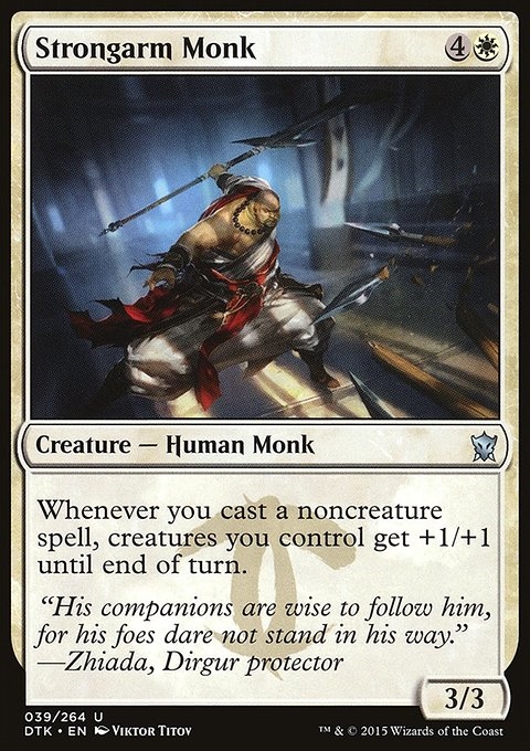 Whenever you cast a noncreature spell, creatures you control get +1/+1 until end of turn.