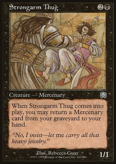 When Strongarm Thug enters the battlefield, you may return target Mercenary card from your graveyard to your hand.