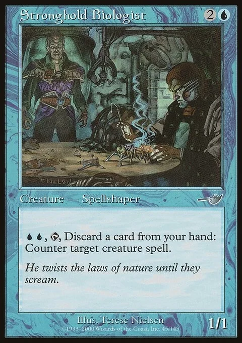 {U}{U}, {T}, Discard a card: Counter target creature spell.