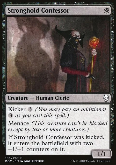 Kicker {3} (You may pay an additional {3} as you cast this spell.) Menace (This creature can't be blocked except by two or more creatures.) If this creature was kicked, it enters with two +1/+1 counters on it.