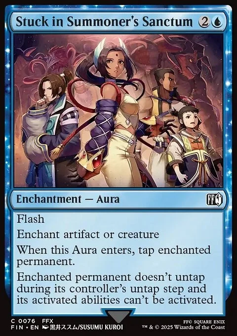 Flash Enchant artifact or creature When this Aura enters, tap enchanted permanent. Enchanted permanent doesn't untap during its controller's untap step and its activated abilities can't be activated.