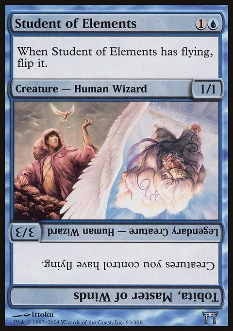Student of Elements When Student of Elements has flying, flip it. Tobita, Master of Winds Creatures you control have flying.