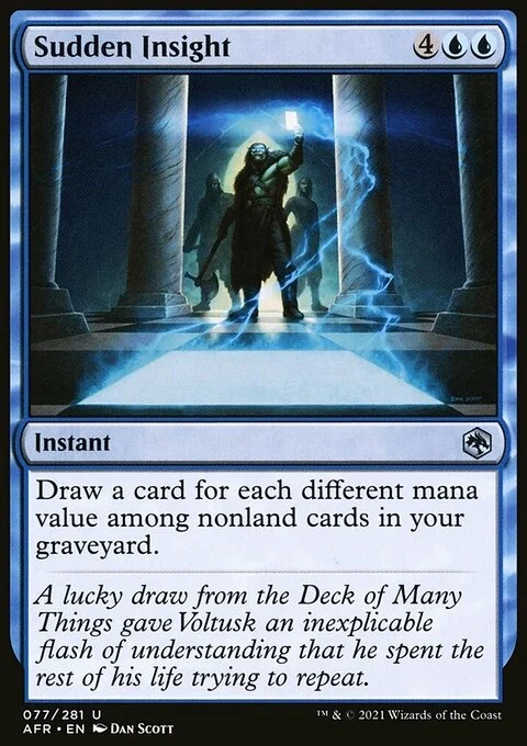 Draw a card for each different mana value among nonland cards in your graveyard.