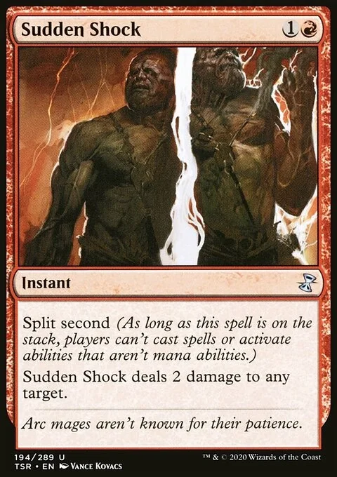 Split second (As long as this spell is on the stack, players can't cast spells or activate abilities that aren't mana abilities.) Sudden Shock deals 2 damage to any target.