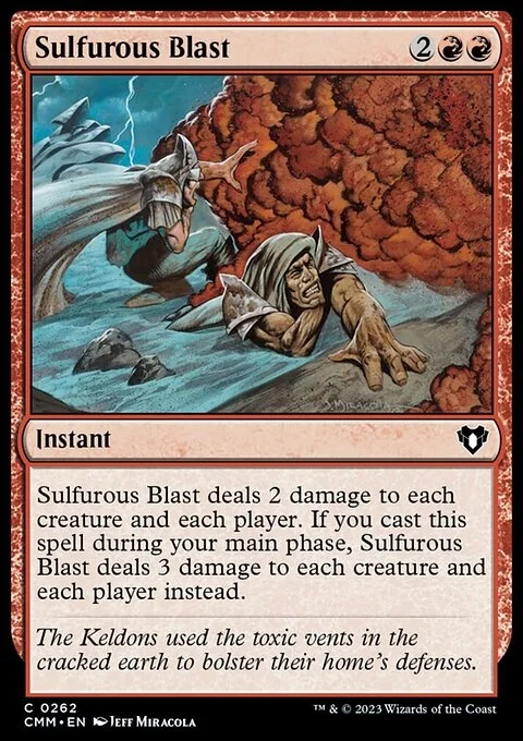 Sulfurous Blast deals 2 damage to each creature and each player. If you cast this spell during your main phase, Sulfurous Blast deals 3 damage to each creature and each player instead.