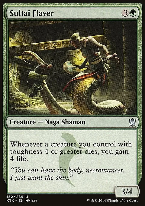 Whenever a creature you control with toughness 4 or greater dies, you gain 4 life.