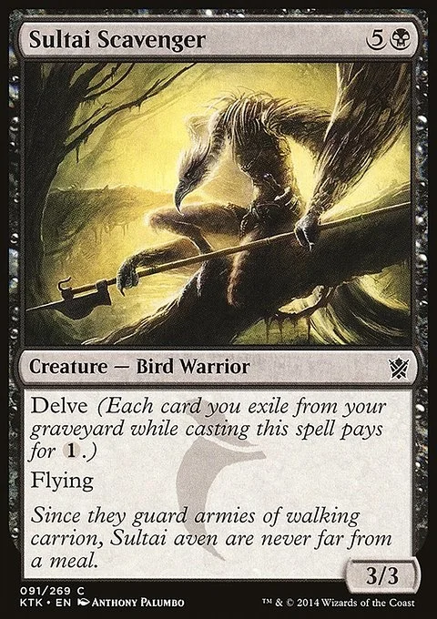 Delve (Each card you exile from your graveyard while casting this spell pays for {1}.) Flying