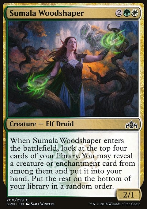 When this creature enters, look at the top four cards of your library. You may reveal a creature or enchantment card from among them and put it into your hand. Put the rest on the bottom of your library in a random order.
