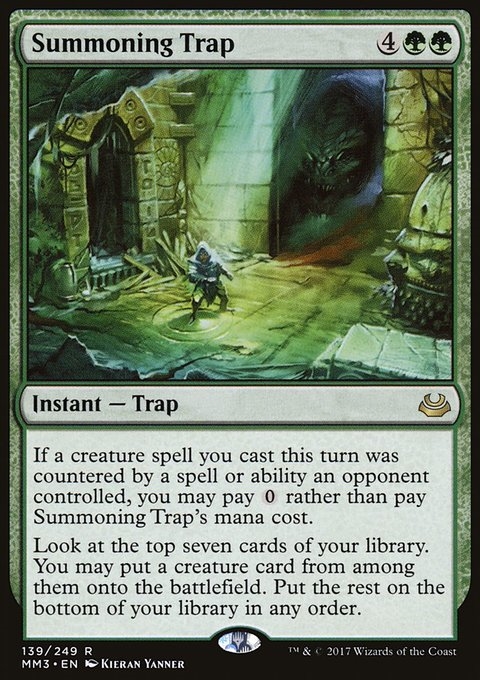 If a creature spell you cast this turn was countered by a spell or ability an opponent controlled, you may pay {0} rather than pay this spell's mana cost. Look at the top seven cards of your library. You may put a creature card from among them onto the battlefield. Put the rest on the bottom of your library in any order.