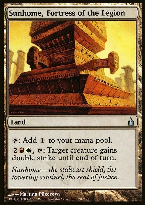 {T}: Add {C}. {2}{R}{W}, {T}: Target creature gains double strike until end of turn.