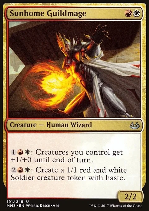 {1}{R}{W}: Creatures you control get +1/+0 until end of turn. {2}{R}{W}: Create a 1/1 red and white Soldier creature token with haste.