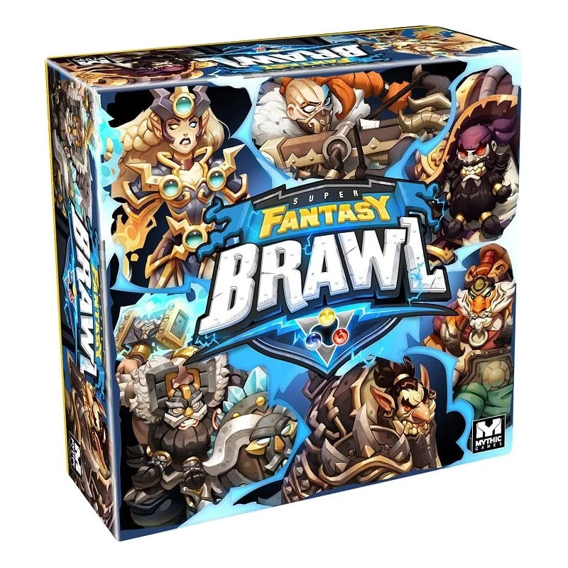 Super Fantasy Brawl is a fun, fast-paced competitive miniatures board game. Players select a team of three champions and combine their unique action cards to create a synergistic action deck. The game is faction-free, so players have their choice of any combination of champions they wish. Each turn, the players use their hand of action cards to maneuver, attack, displace enemies, and claim objectives to score victory points.
