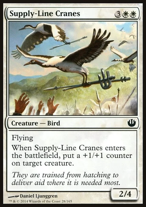 Flying When Supply-Line Cranes enters the battlefield, put a +1/+1 counter on target creature.