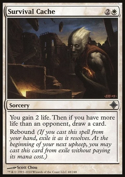 You gain 2 life. Then if you have more life than an opponent, draw a card. Rebound (If you cast this spell from your hand, exile it as it resolves. At the beginning of your next upkeep, you may cast this card from exile without paying its mana cost.)