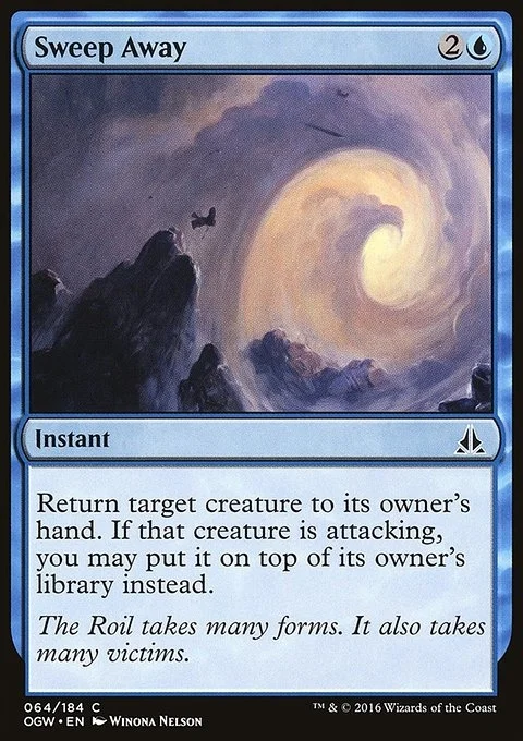 Return target creature to its owner's hand. If that creature is attacking, you may put it on top of its owner's library instead.