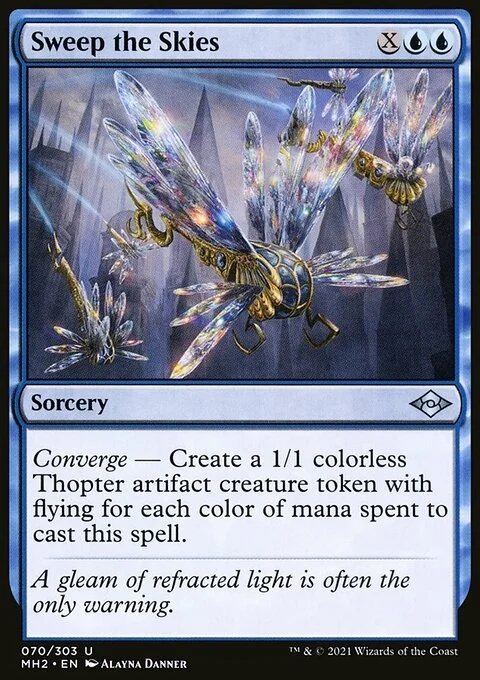 Converge — Create a 1/1 colorless Thopter artifact creature token with flying for each color of mana spent to cast this spell.
