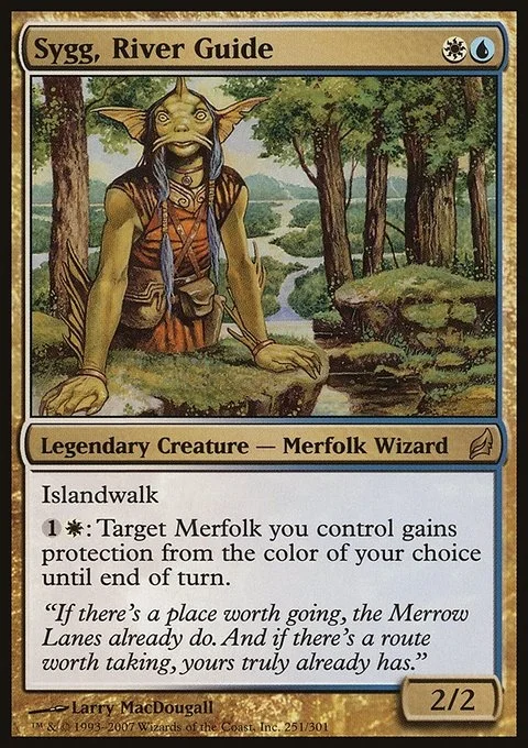 Islandwalk (This creature can't be blocked as long as defending player controls an Island.) {1}{W}: Target Merfolk you control gains protection from the color of your choice until end of turn.
