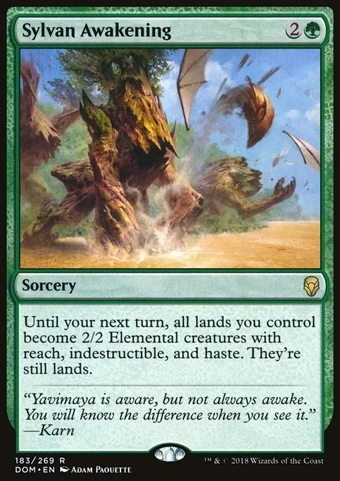 Until your next turn, all lands you control become 2/2 Elemental creatures with reach, indestructible, and haste. They're still lands.
