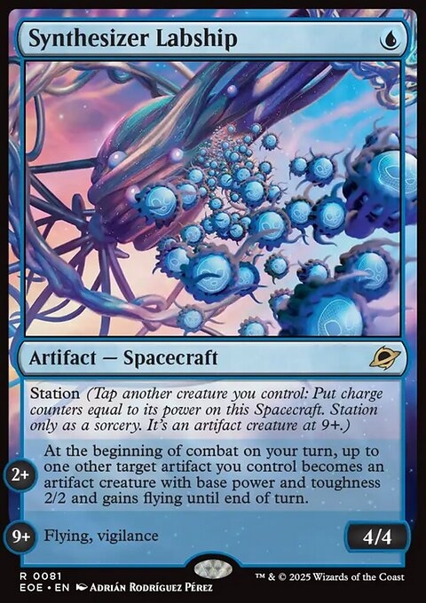Station (Tap another creature you control: Put charge counters equal to its power on this Spacecraft. Station only as a sorcery. It's an artifact creature at 9+.)