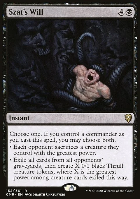 • Exile all opponents' graveyards, then create X 0/1 black Thrull creature tokens, where X is the greatest power among creature cards exiled this way.