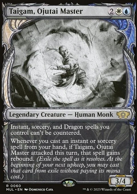 Whenever you cast an instant or sorcery spell from your hand, if Taigam, Ojutai Master attacked this turn, that spell gains rebound. (Exile the spell as it resolves. At the beginning of your next upkeep, you may cast that card from exile without paying its mana cost.)
