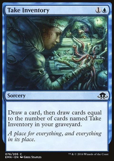 Draw a card, then draw cards equal to the number of cards named Take Inventory in your graveyard.