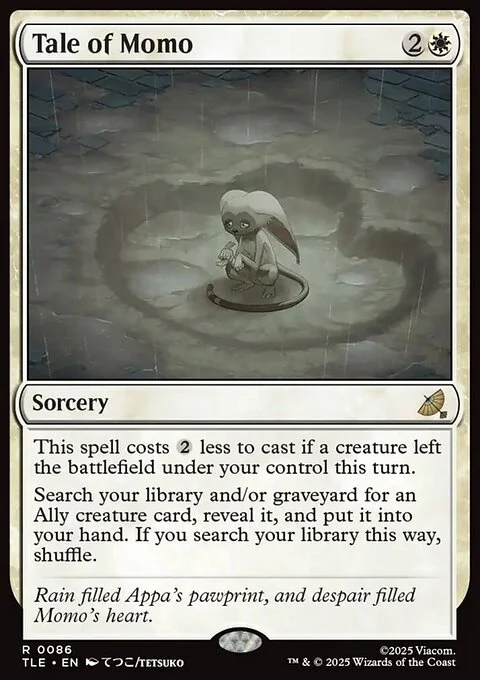 This spell costs {2} less to cast if a creature left the battlefield under your control this turn. Search your library and/or graveyard for an Ally creature card, reveal it, and put it into your hand. If you search your library this way, shuffle.