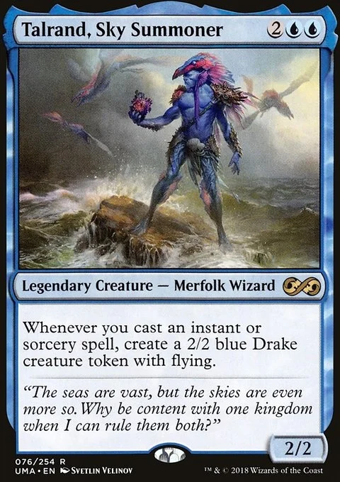Whenever you cast an instant or sorcery spell, create a 2/2 blue Drake creature token with flying.