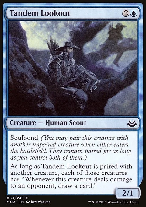 As long as Tandem Lookout is paired with another creature, each of those creatures has "Whenever this creature deals damage to an opponent, draw a card."