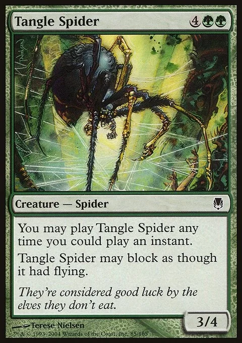 Flash (You may cast this spell any time you could cast an instant.) Reach (This creature can block creatures with flying.)