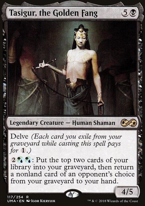 Delve (Each card you exile from your graveyard while casting this spell pays for {1}.) {2}{G/U}{G/U}: Mill two cards, then return a nonland card of an opponent's choice from your graveyard to your hand.
