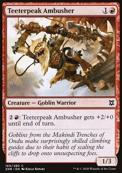 {2}{R}: Teeterpeak Ambusher gets +2/+0 until end of turn.