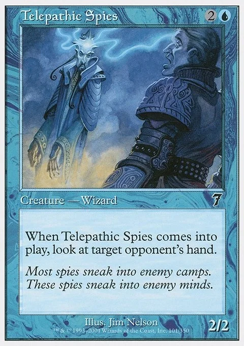 When Telepathic Spies enters the battlefield, look at target opponent's hand.