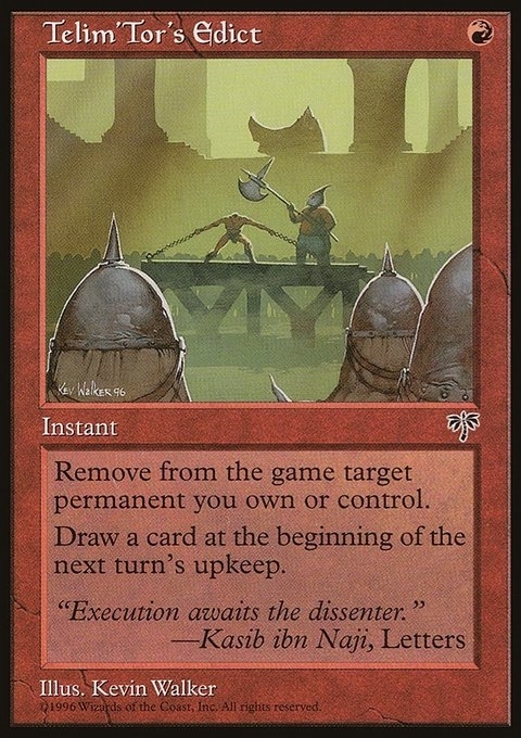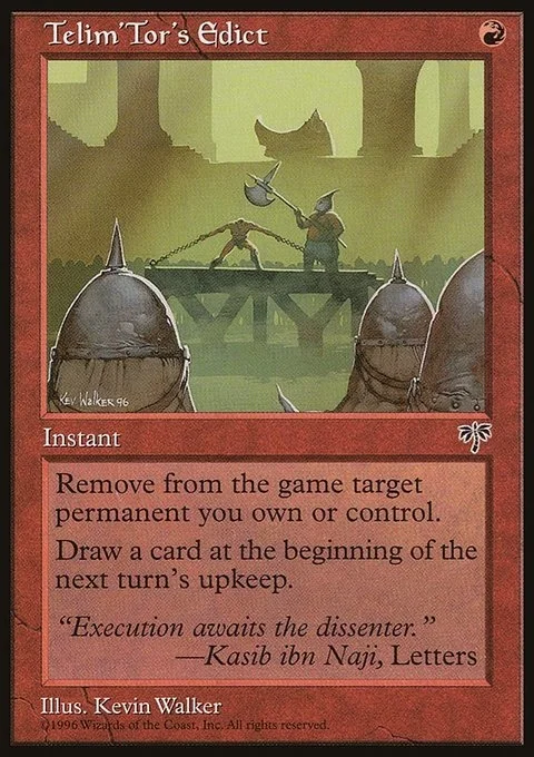 Remove from the game target permanent you own or control.Draw a card at the beginning of the next turn’s upkeep.