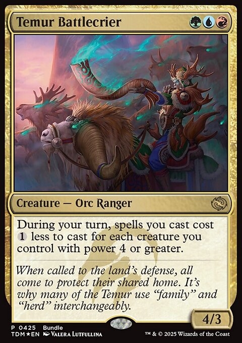 During your turn, spells you cast cost {1} less to cast for each creature you control with power 4 or greater.