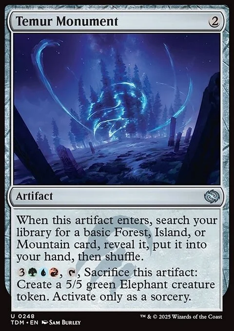 When this artifact enters, search your library for a basic Forest, Island, or Mountain card, reveal it, put it into your hand, then shuffle.